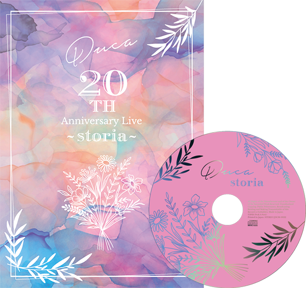 過去ライブの振り返り、20周年を迎えたDucaへアーティストやゲームクリエーターからのお祝いのメッセージ、 特典のミニアルバムには過去ライブパンフレット楽曲、新規書き下ろし楽曲「storia」を加えた全6曲の豪華仕様。